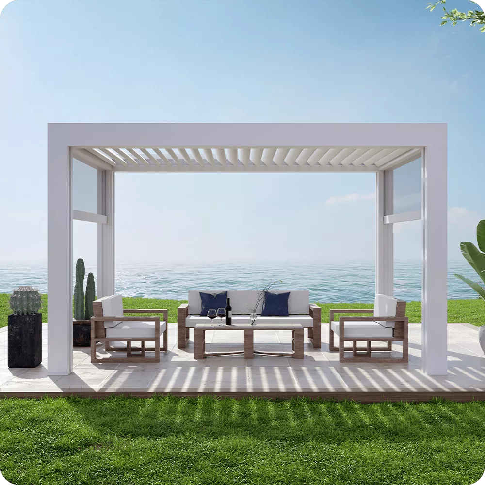 In base al loro orientamento la struttura offre protezione totale o parziale dal sole, un’illuminazione perfetta ed un perfetto riparo dalla pioggia.